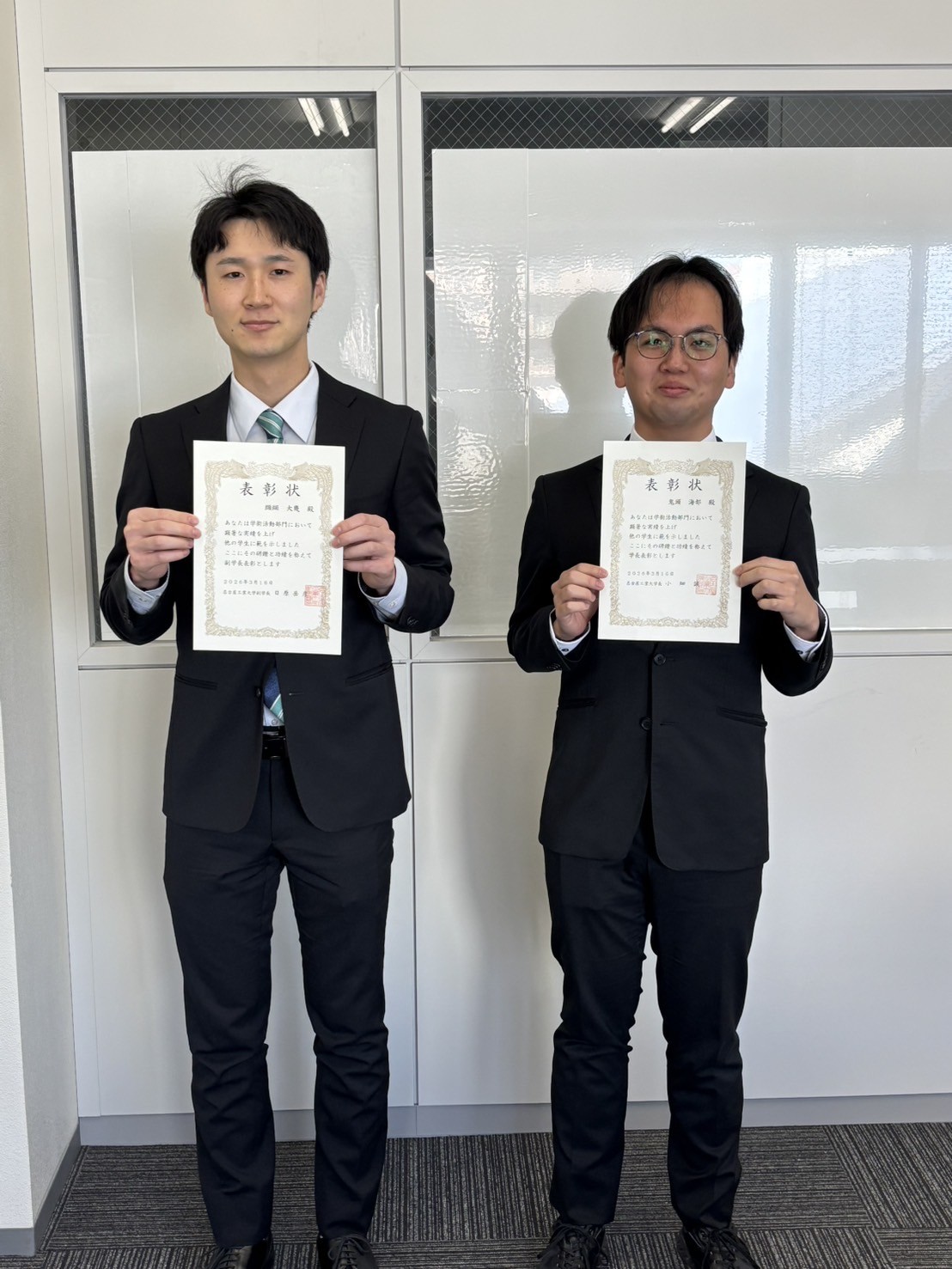 名古屋工業大学2025年度学生表彰において,M2鬼頭君が学長表彰【学術活動部門】,纐纈君が副学長表彰【学術活動】を受賞しました。