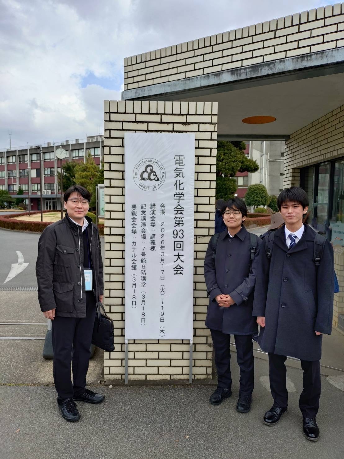 M1磯谷君,新実君が東京理科大学野田キャンパスで開催された電気化学会第93回大会に参加しました。M1新美君が優秀学生講演賞を受賞しました。