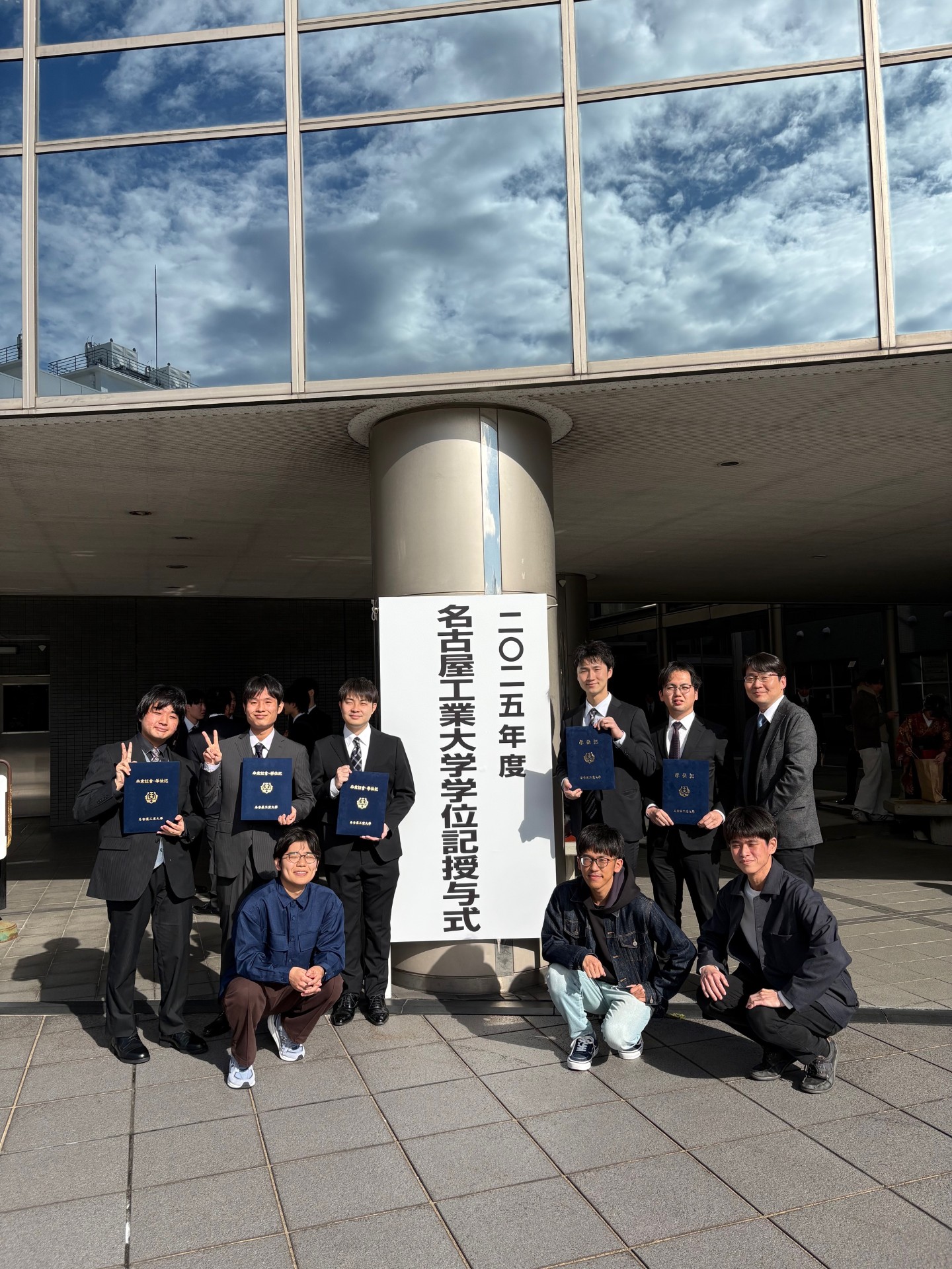 卒業式・学位授与式が行われ,M2鬼頭君,纐纈君,B4小嶋君,原君,和田君が卒業しました。卒業おめでとうございます!